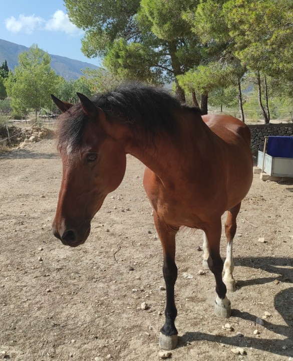 Llegó en 2019 y, desde entonces, se ha convertido en uno de los caballos más simpáticos y respetuosos del grupo. Tiene una gran capacidad para relacionarse tanto con otros caballos como con las personas, manteniendo siempre un equilibrio entre energía y cooperación.