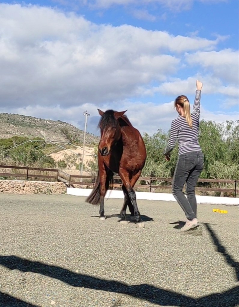 A través de gestos, posición corporal, energía y ayudas simples, creamos un diálogo comprensible y coherente, donde el caballo puede responder sin tensión ni confusión.
